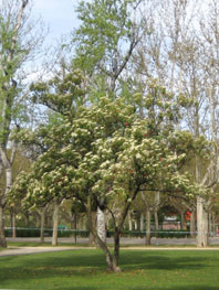 Como curiosidad, y al menos en Zaragoza, muchos ejemplares están injertados sobre un pie de membrillero (Cydonia oblonga) y a veces podemos ver brotar sus hojas en la base.