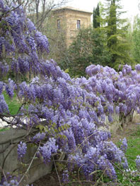 - El nombre genérico proviene del médico americano Caspar Wistar, de principios del S. XIX.La planta procede de China y se introdujo en Europa en 1816, viviendo todavía uno de los primeros ejemplares plantados en el Jardín Botánico de Kew, en Londres.