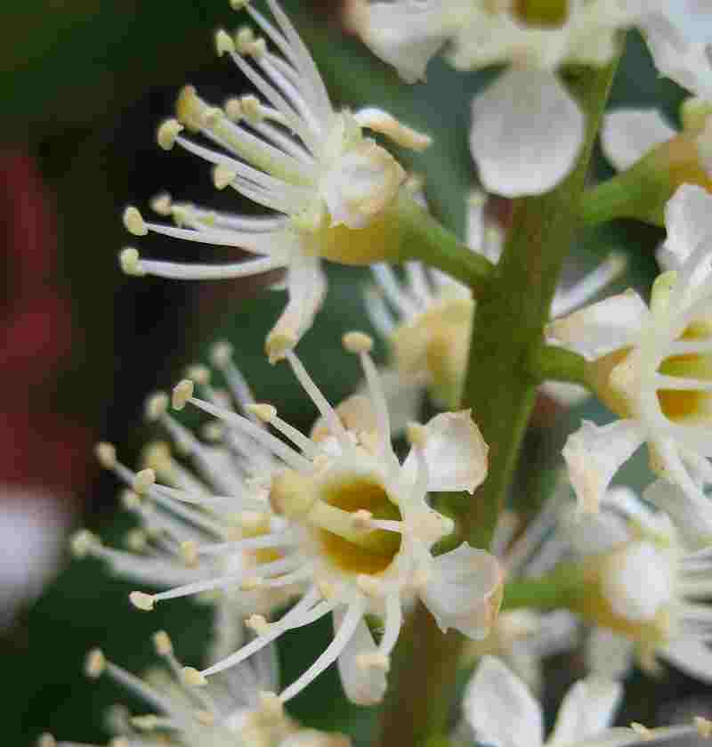 El específico laurocerasus de laurus "laurel" y cerasus "cerezo" hace referencia a que se asemeja a un cerezo con hojas de laurel.