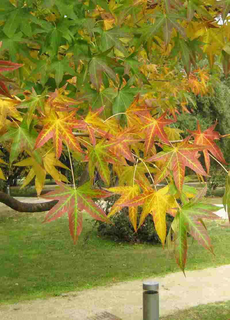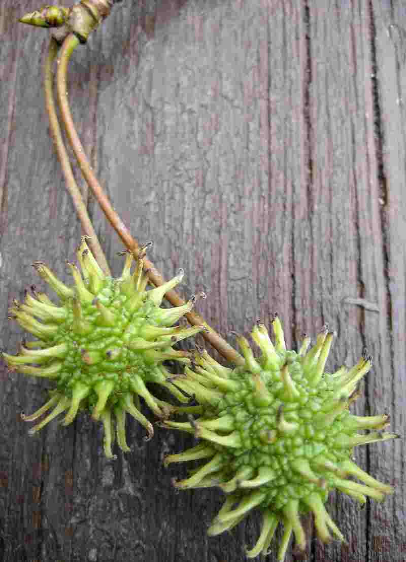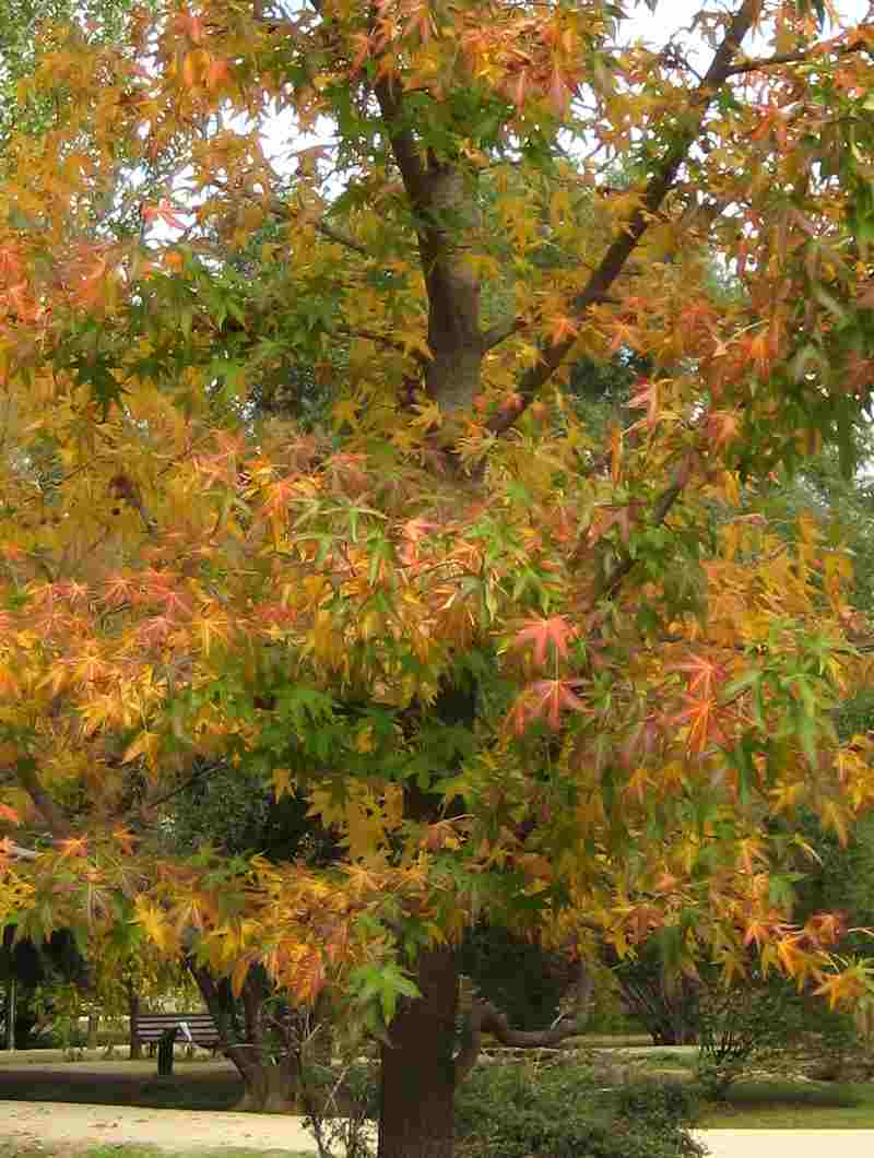- El nombre específico styraciflua, significa rico en sustancias gomosas. Su lugar de origen se encuentra en oeste de Norteamérica, Méjico y Guatemala. Se introdujo en Europa en 1681.