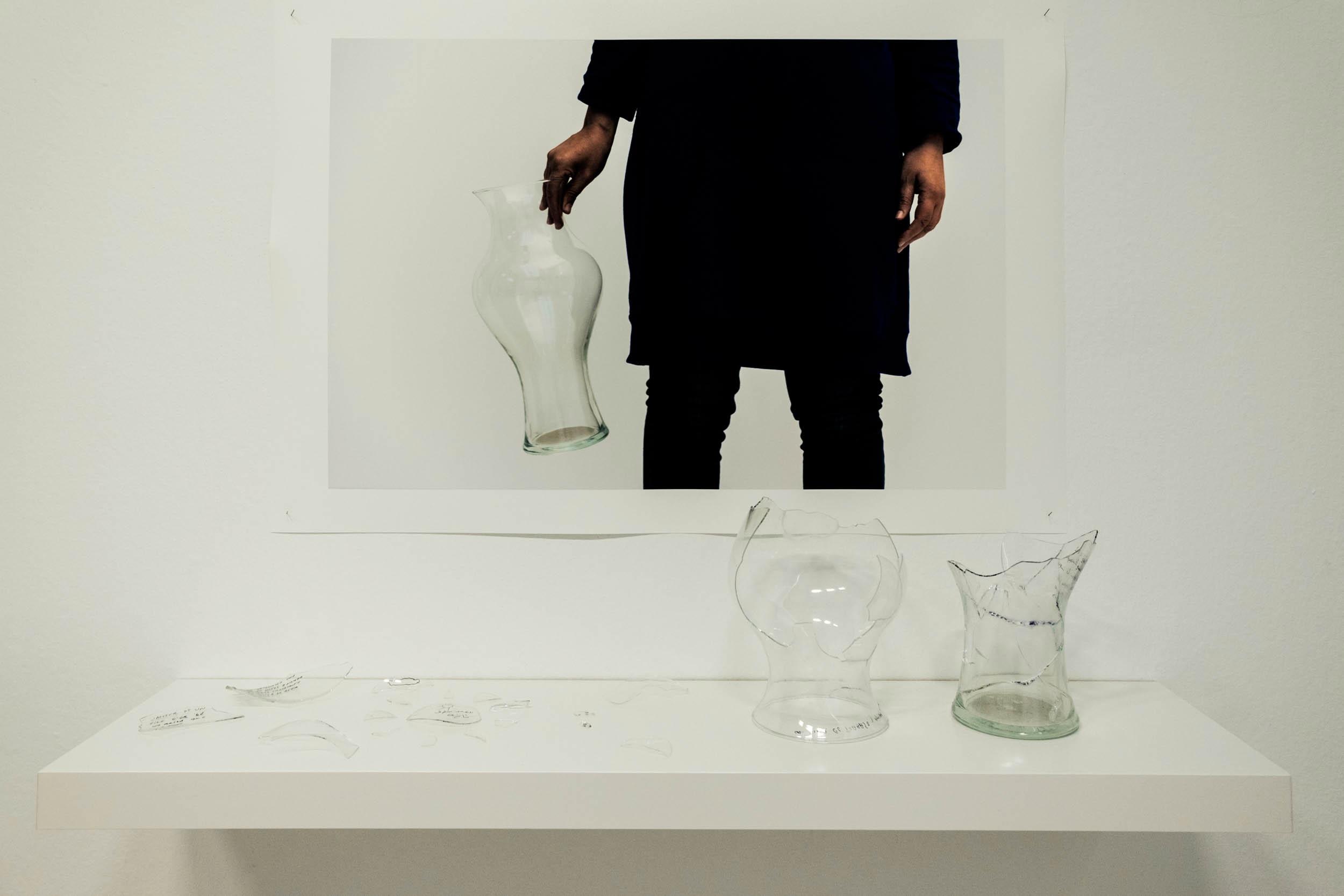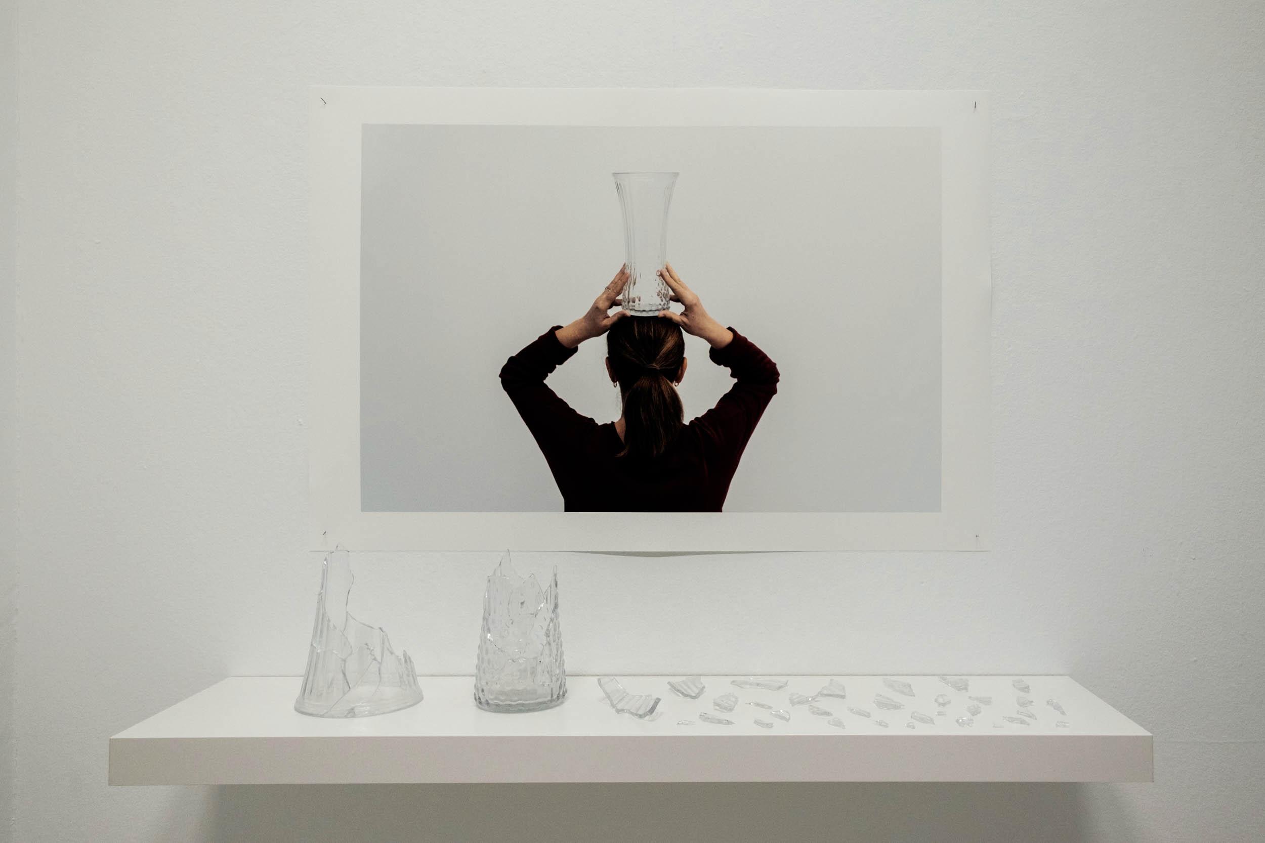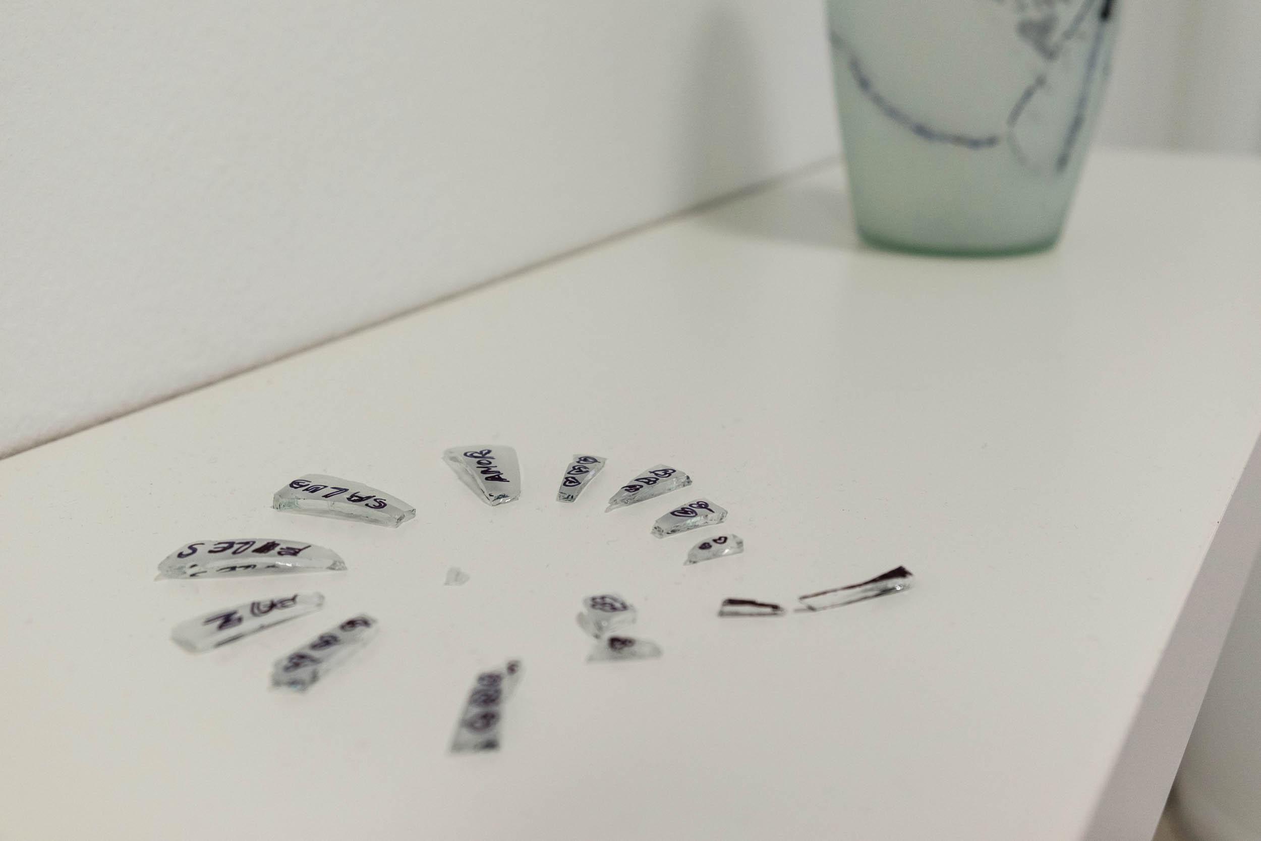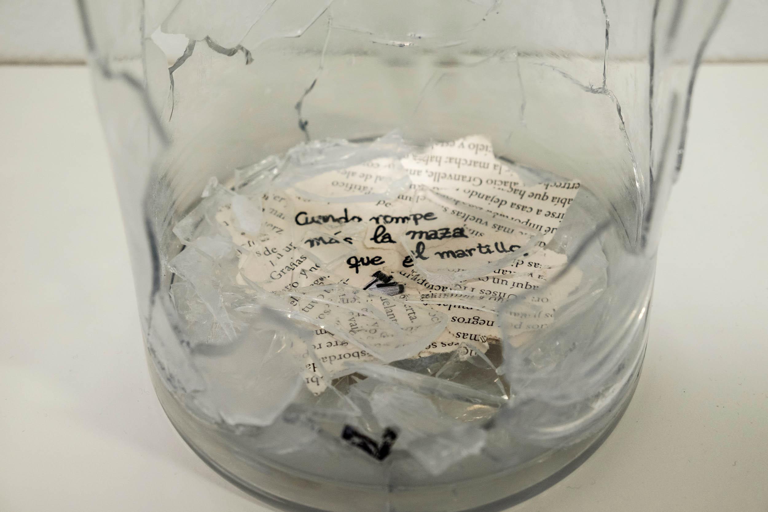 Es un elemento que forma parte de su imaginario personal, de los recuerdos que tienen que regenerarse, y para ello se ha planteado la siguiente acción: destrucción-construcción. Romper dicho jarrón/pasado para reconstruir otro/futuro partiendo de las ruinas del original. Alguno vuelve a recuperar su aspecto como jarrón, conservando las marcas/cicatrices del proceso, pero otros, simplemente muestran sus fragmentos casi como un estudio arqueológico, formando una suerte de archipiélagos de la memoria.