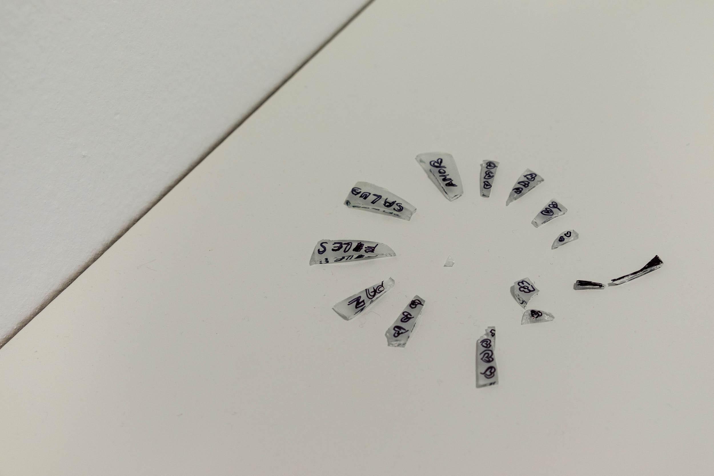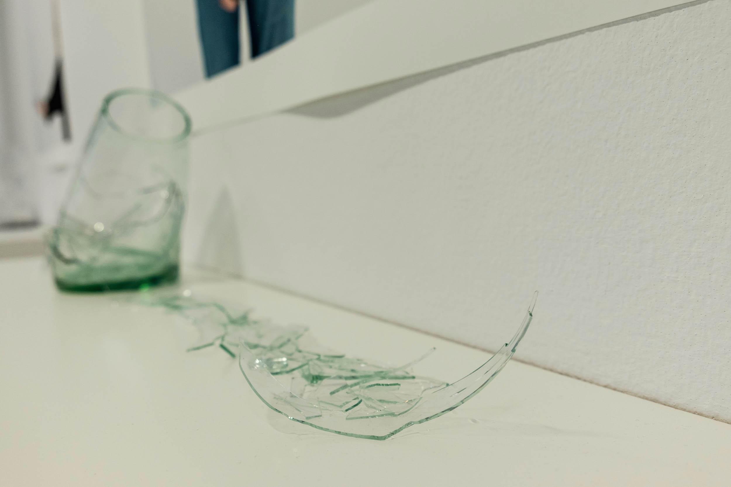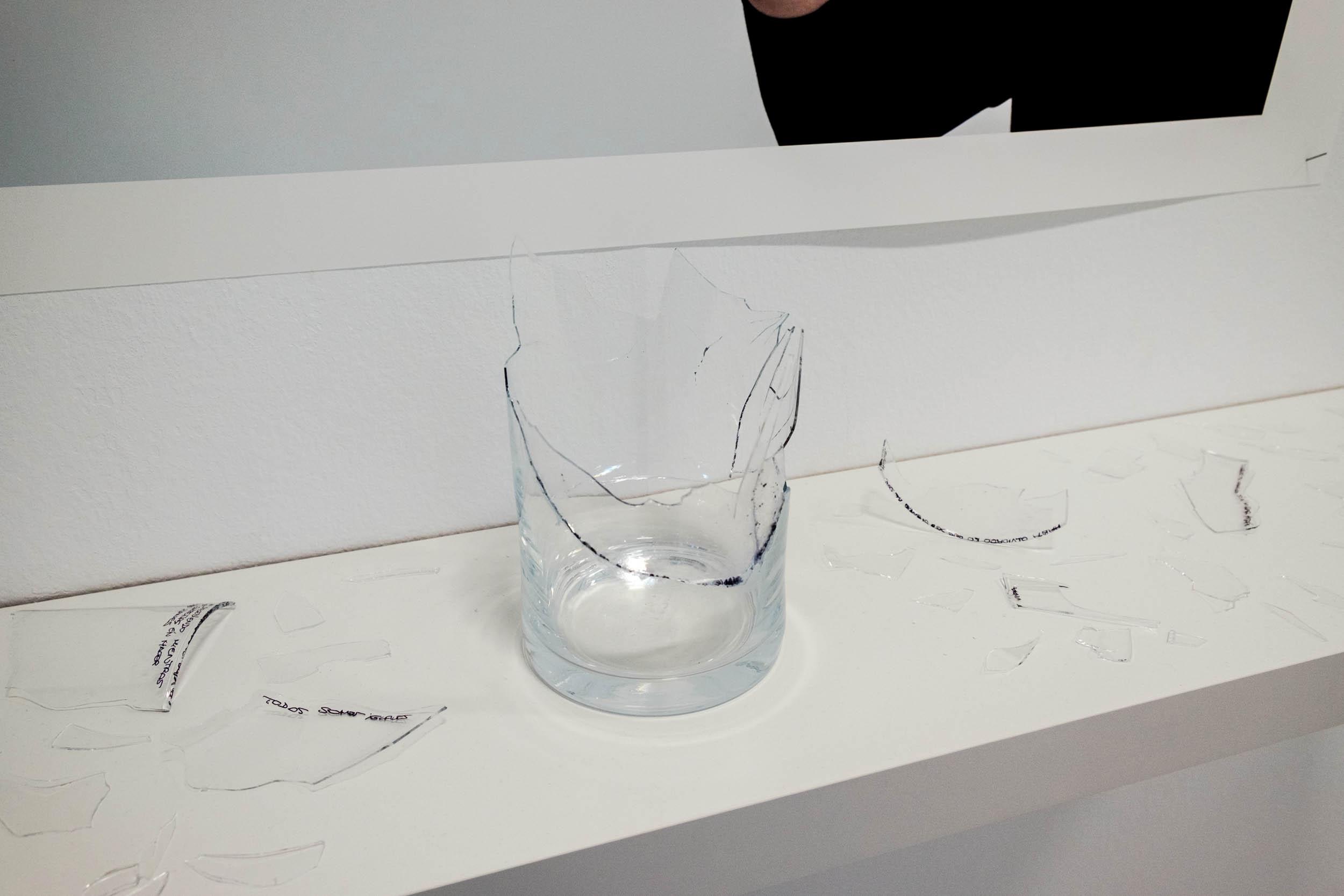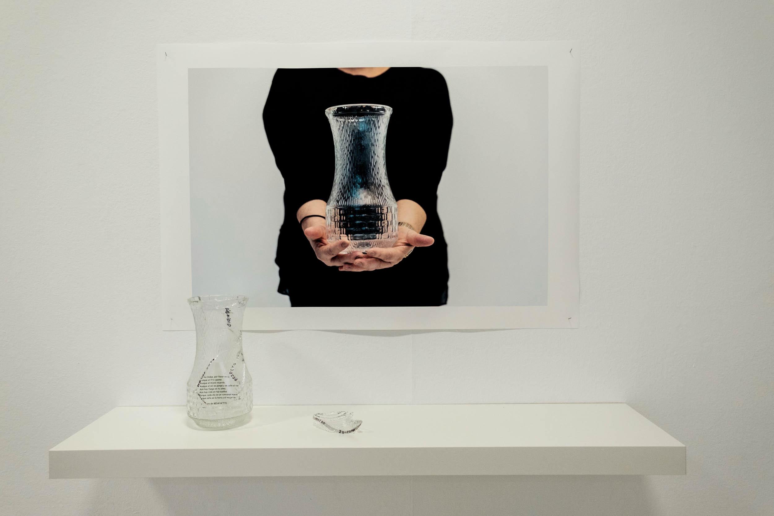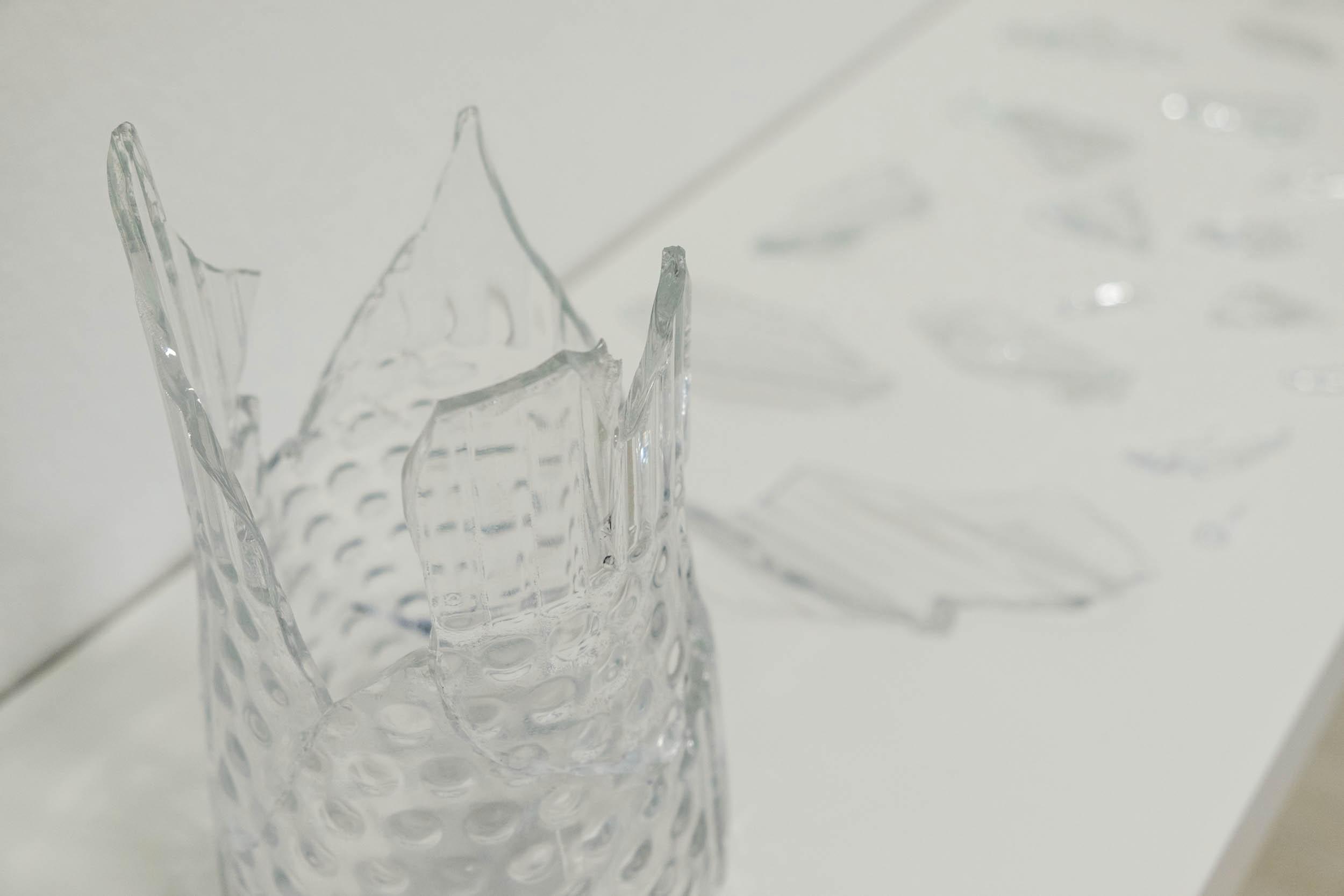 Es un elemento que forma parte de su imaginario personal, de los recuerdos que tienen que regenerarse, y para ello se ha planteado la siguiente acción: destrucción-construcción. Romper dicho jarrón/pasado para reconstruir otro/futuro partiendo de las ruinas del original. Alguno vuelve a recuperar su aspecto como jarrón, conservando las marcas/cicatrices del proceso, pero otros, simplemente muestran sus fragmentos casi como un estudio arqueológico, formando una suerte de archipiélagos de la memoria.