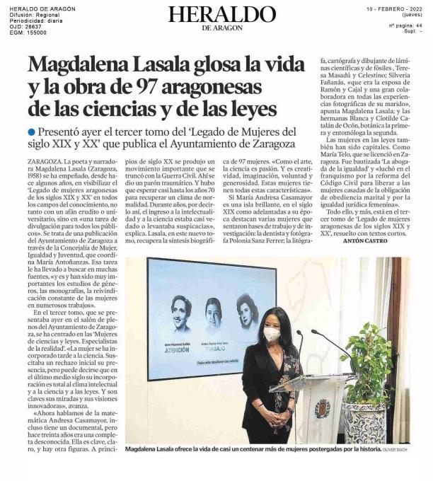 Exposición didáctica "Mujeres de ciencias y leyes, especialistas de la realidad" realizada y distribuida en 22 paneles sobre la selección de biografías de Magdalena Lasala contenidas en el tercer volumen del proyecto Legados de Mujeres Aragonesas de los siglos XIX y XX.