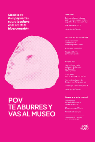 P.O.V te aburres y vas al museo es un ciclo del proyecto residente juvenil en Museo Rompepuertas que explora la hiper conexión y el aburrimiento a través de las artes en la era del internet para xavalikos y tias xulas.