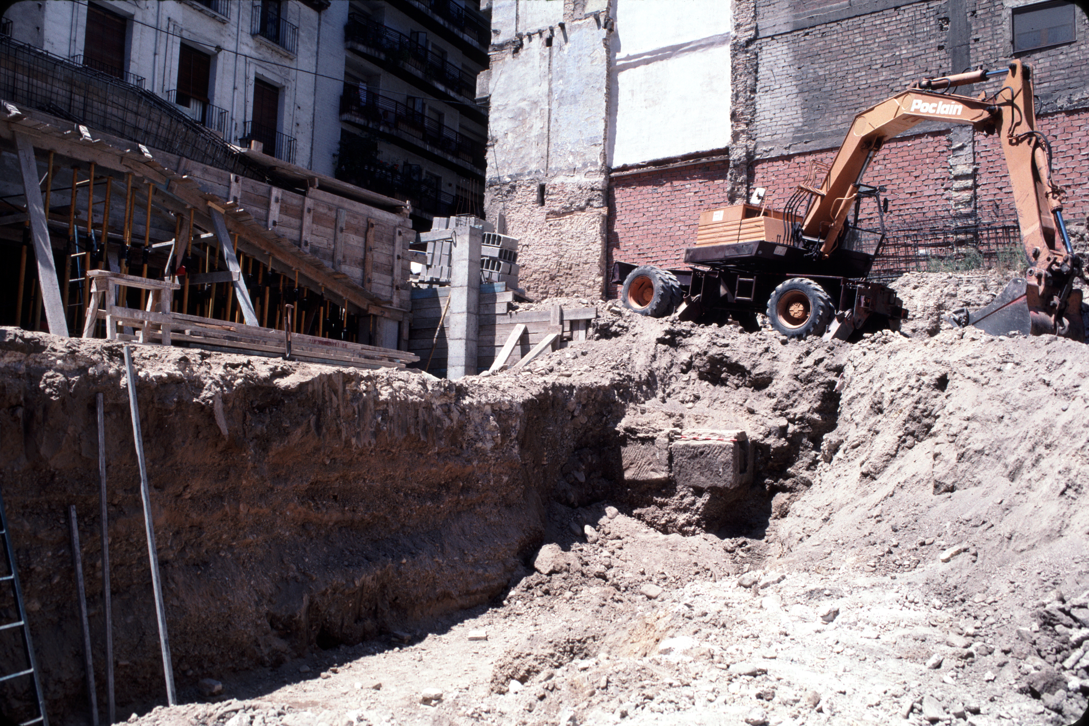 La historia de los trabajos arqueológicos en este enclave comienza en 1982, cuando se acometió la regularización del trazado de la calle San Juan y San Pedro, en el casco histórico de Zaragoza, descubriendo parte de una estructura porticada de época romana. A continuación, se ampliaron las excavaciones al solar contiguo, en los números 3-7 de la misma calle, donde aparecieron los restos de una gran piscina, a la que correspondía el pórtico perimetral constatado en la vía pública.