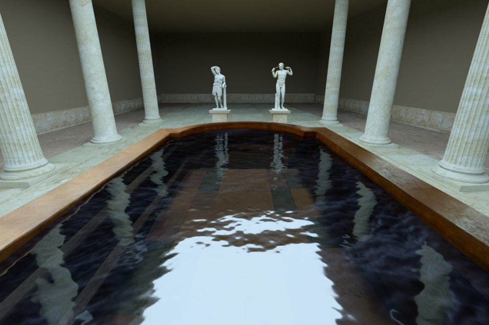 La visita se complementa con un audiovisual panorámico de gran formato que permite conocer las diferentes estancias de las Termas y disfrutar de sus diversos ambientes. También se puede visualizar una recreación virtual en la que se describe la transición del espacio de las letrinas al de la piscina.
