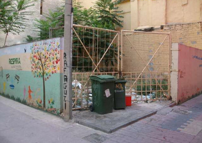 - El muro del edificio contiguo al solar acondicionado el año 2017 se ha decorado con arte urbano realizado por el artista Isaac Mahow.