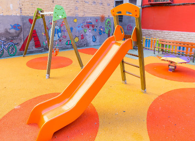 - Acondicionamiento de solar para uso infantil. Colocación de columpio, tobogán y juego, sobre base de caucho amortiguado, vallado infantil y bancos.