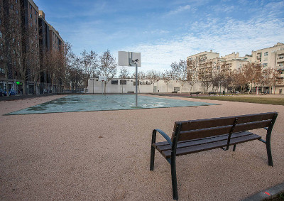 - Relleno del suelo a cota de acera, ejecución de pista de baloncesto.
