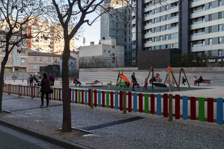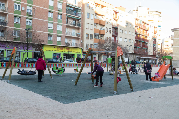 Para el parque infantil se han instalado un total de siete juegos sobre suelo de caucho amortiguador y un arenero. Cuatro de los juegos son aptos para su uso por menores con discapacidad motora. Además, se ha vallado todo el solar con valla infantil y se han colocado cuatro bancos y una mesa de ping-pong.