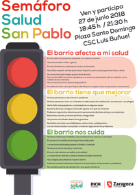 Desde el Consejo de Salud de San Pablo queremos saber qué cosas de nuestro barrio nos gustan y cuáles habría que mejorar para vivir más saludablemente. Para ello vamos a usar un código de colores, como un semáforo: en rojo aparecerán las cosas que no colaboran a nuestra salud y deberían mejorar en verde aparecerán las que consideramos saludables, para visibilizarlas y mantenerlas
