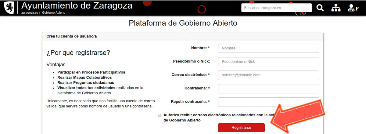 • ContraseñaPulsa en Registrarse. Para completar tu registro, como te indicará esta web, solo tendrás que acceder a tu correo y, con un solo click a través de un enlace, activar tu cuenta.