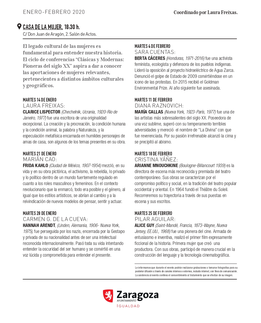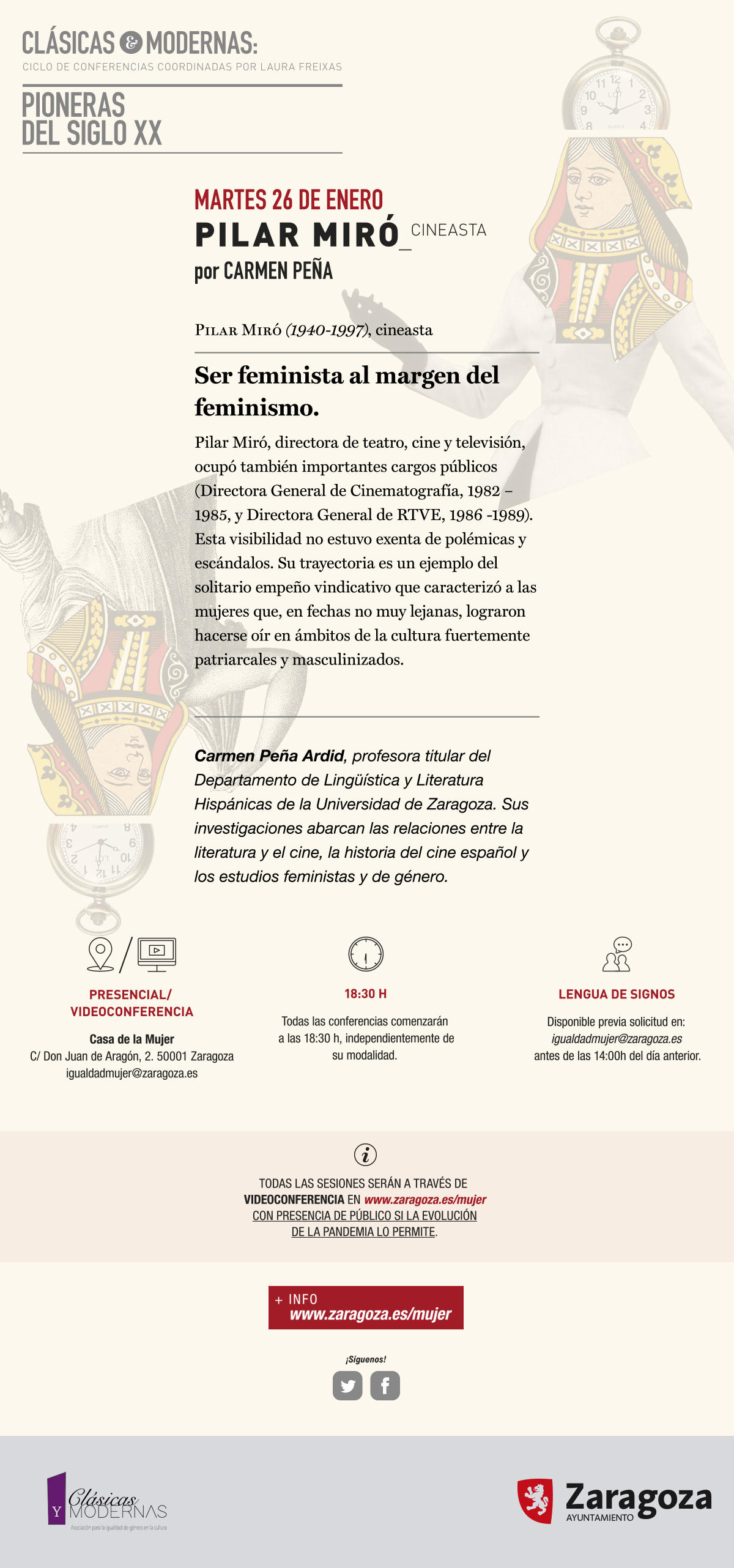 El Servicio de Igualdad y Mujer continúa organizando este ciclo en colaboración con la Asociación Clásicas y Modernas, asociación que tiene entre sus fines la Igualdad de Género en el campo de la cultura.
