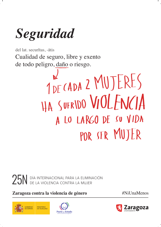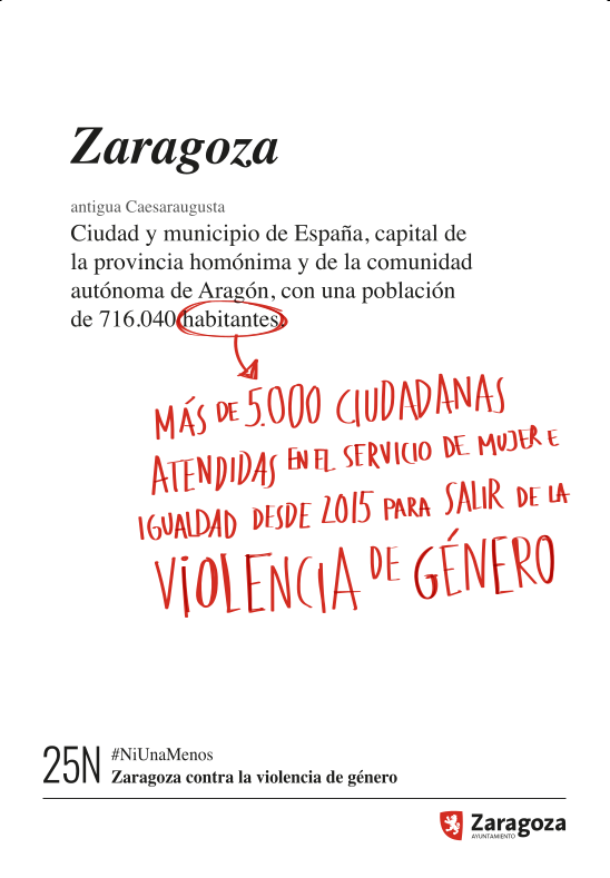 Con motivo del Día Internacional para la Eliminación de la Violencia contra las Mujeres (25 de noviembre) el Ayuntamiento de Zaragoza, a través del Servicio de Igualdad, organiza diversas iniciativas de información y sensibilización sobre la violencia de género