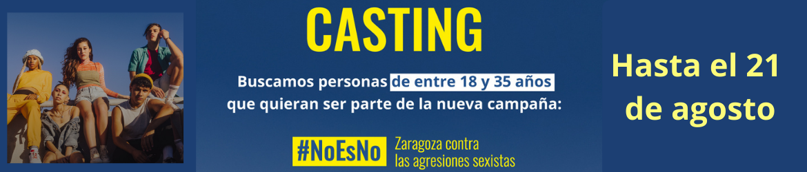 El Ayuntamiento de Zaragoza busca jóvenes para participar en la campaña 'No es no' contra las agresiones sexistas prevista para las Fiestas del Pilar.