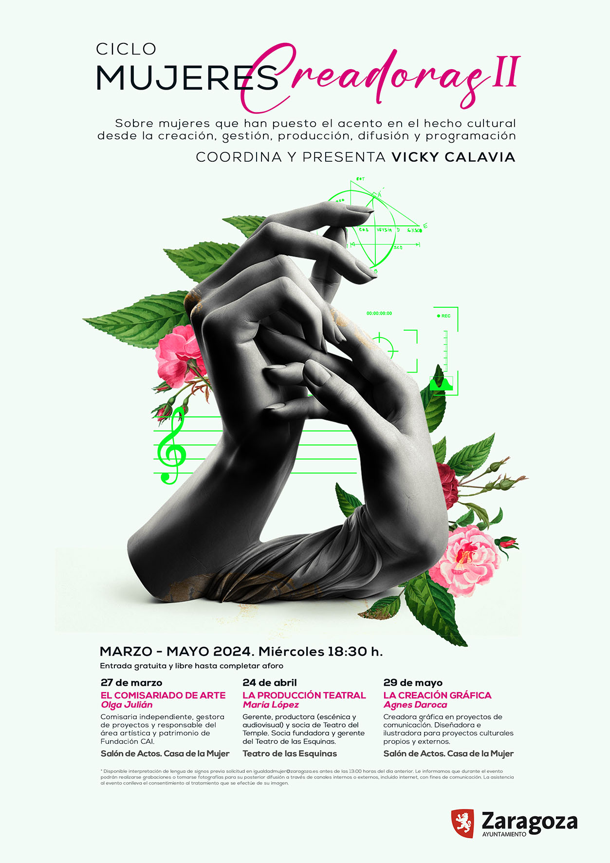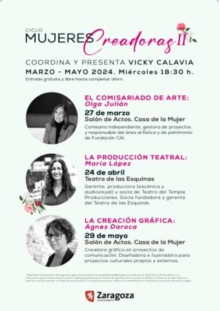 Este ciclo se pone en marcha un miércoles al mes desde marzo a mayo de 2024 en horario de 18:30h con un formato tipo entrevista con muestra audiovisual de la actividad creadora de cada invitada.
