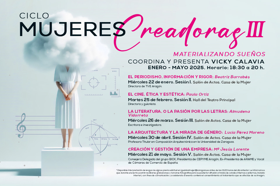 Este ciclo se pone en marcha un miércoles al mes desde enero a mayo de 2025 en horario de 18:30 a 20:00 horas con un formato tipo entrevista con muestra audiovisual de la actividad creadora de cada invitada.
