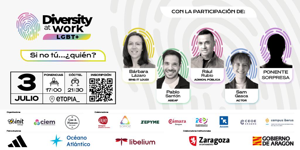 Llega a Zaragoza, el 3 de julio, bajo el lema de "Si no tú….¿quién?", personas que forman parte del colectivo LGBTI nos ofrecen su mirada sobre oportunidades y retos empresariales y organizacionales. Un evento nacional que pone la diversidad del colectivo LGBT+ en el centro del ámbito empresarial, el LGBT+@WORK in Zaragoza. Un evento que organizamos desde Grupo Init, y que ha sido cedido para este capítulo nacional por el club IE Out and Allies de IE University.