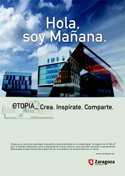En definitiva, Etopia es para los usuarios una especie de banco de pruebas de actuaciones digitales dirigido y coordinado por el Ayuntamiento de Zaragoza en colaboración con otras asociaciones y entidades -principal y fundamentalmente, la Fundación Zaragoza Ciudad del Conocimiento- pero donde los usuarios son los que crean, comparten y se interrelacionan convirtiéndose en los auténticos directores de actividad.