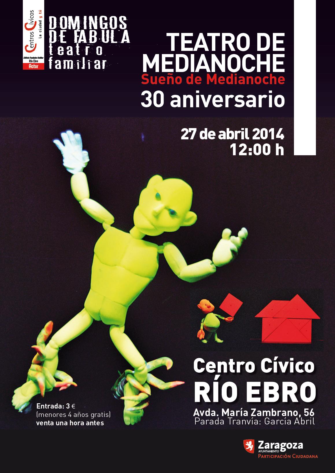 Este próximo domingo, día 27 de abril, el Centro Cívico Río Ebro (María Zambrano, 56), acogerá por la mañana un espectáculo de teatro para público familiar, y por la tarde un nuevo recital del ciclo "Clásicos de la literatura musical".