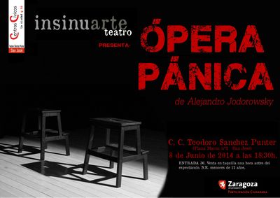 Y el domingo 8 de junio, a las 18:30h, teatro para adultos con la obra Ópera Pánica, de Alejandro Jodorowsky, a cargo de Insinuarte Teatro.
