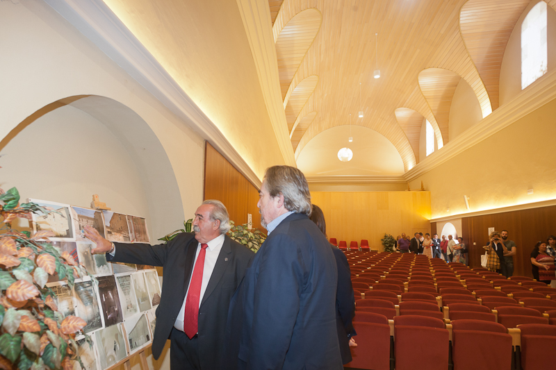 Tras visitar la Portería, Juan Alberto Belloch y José Ramón se han dirigido hasta la plaza y, desde allí, se han acercado al Refectorio. La inauguración de este edificio, que en la actualidad se destina a albergar actuaciones teatrales, proyecciones cinematográficas, charlas y actividades de animación infantil, tuvo lugar en 2005.