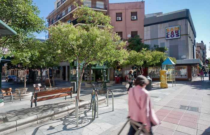 La Junta de Distrito de Delicias ha aprovechado esta intervención que mejora la escena urbana en  la plaza de Huesca  para reparar los bancos de este espacio de encuentro de los vecinos en el corazón de Delicias, junto a la avenida de Madrid.