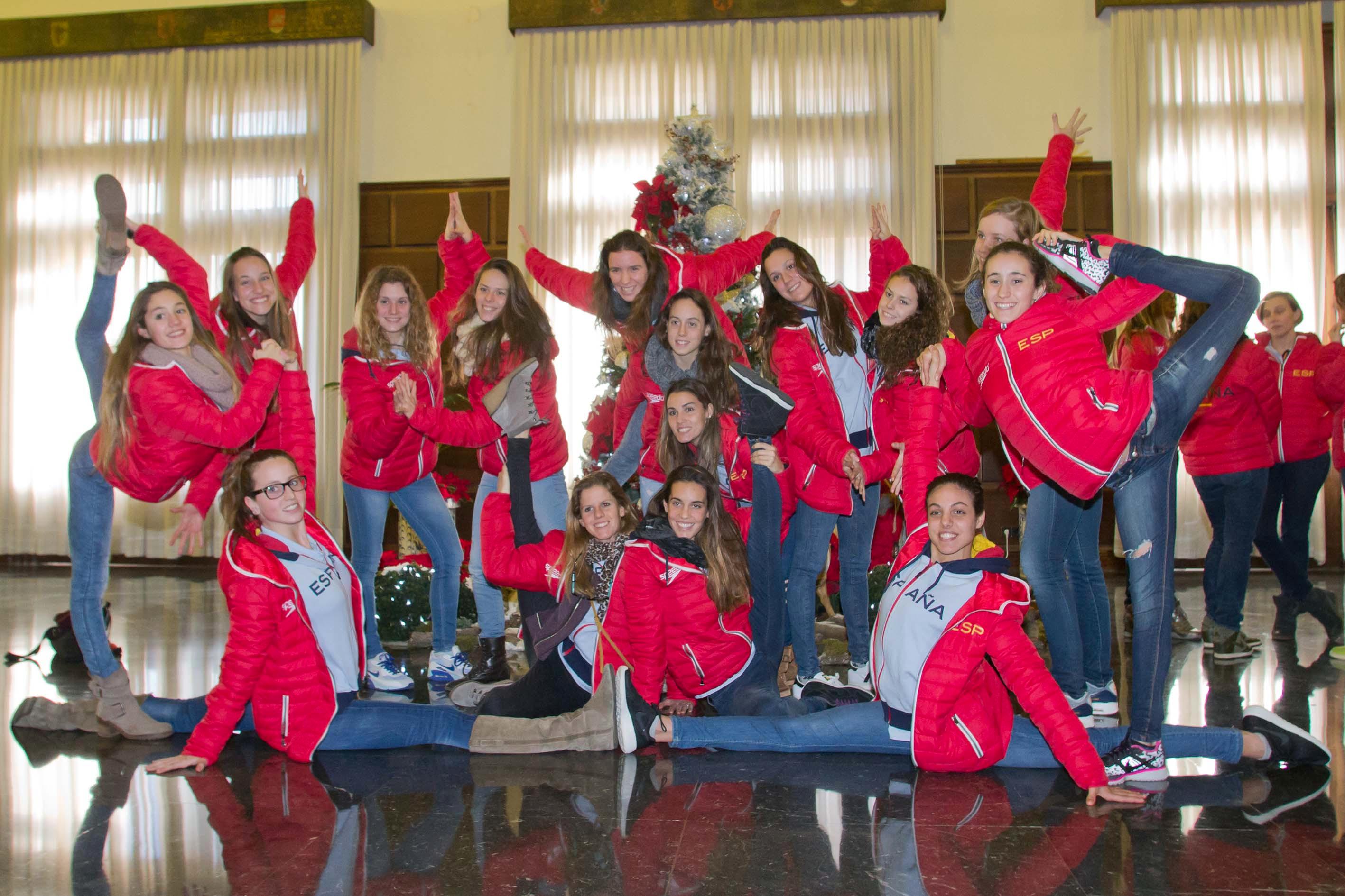 A las deportistas les han acompañado el equipo técnico, dirigido por Ana Montero y formado, entre otras, por Gemma Mengual; y el presidente de la Federación Española de Natación, Fernando Carpena.