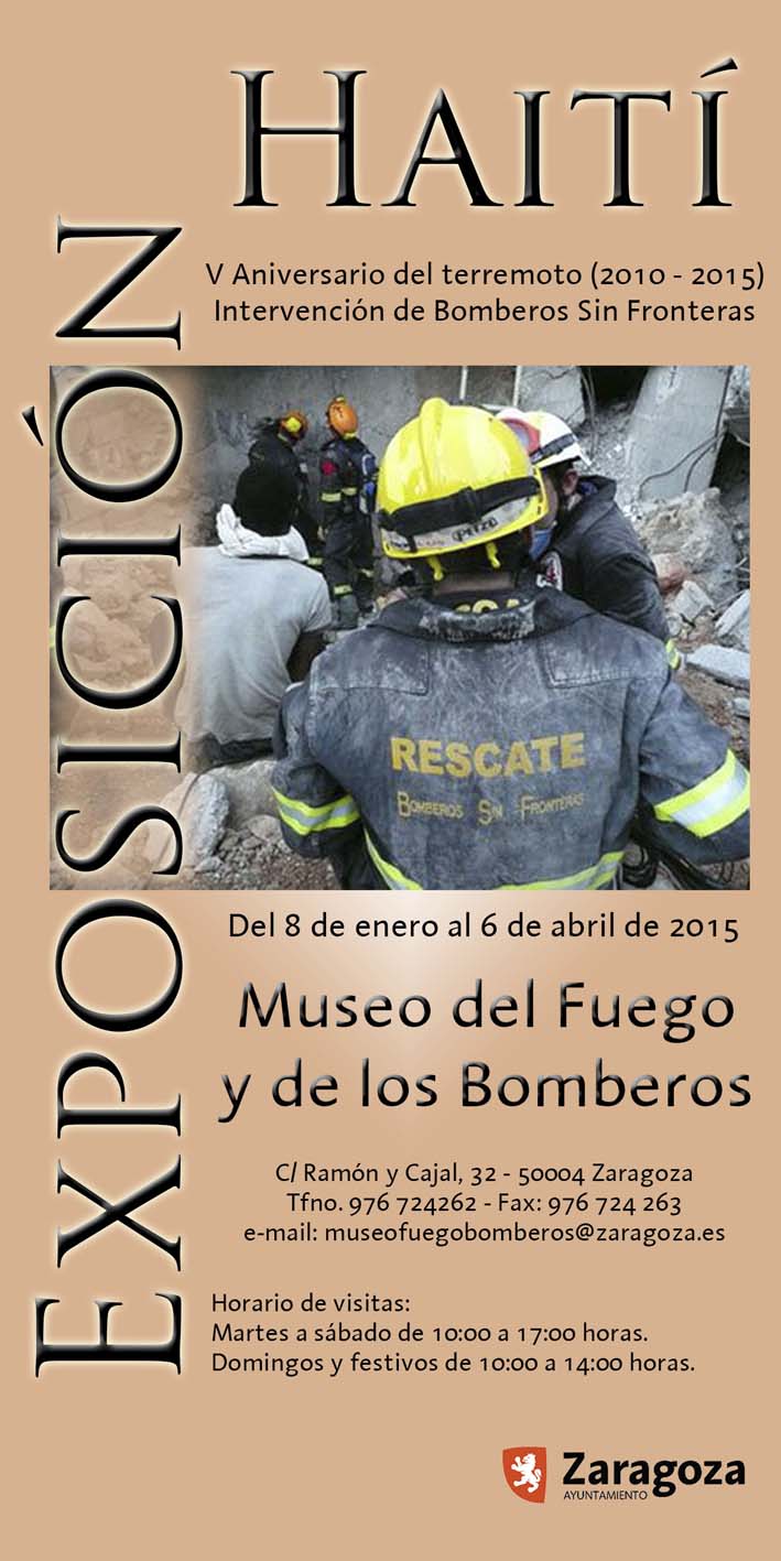 El Museo del Fuego y de los Bomberos acoge, hasta el 6 de abril, una exposición fotográfica sobre el V Aniversario del terremoto de Haití (2010-2015). La muestra ha sido organizada en colaboración con Bomberos Sin Fronteras, y recoge distintas imágenes de las intervenciones realizadas por la ONG en aquella terrible catástrofe.