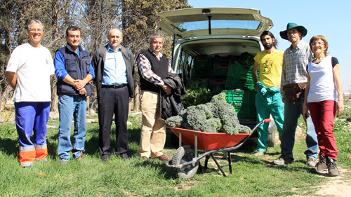 Con esta finalidad se han entregado esta mañana unos 75 kilos de hortalizas ecológicas (brocoli, acelga, borraja, espinacas, puerros, apio, lechugas, coles de bruselas y repollo) al comedor social de la parroquia del Carmen. Conforme se vayan cosechando alimentos se organizarán nuevas entregas.