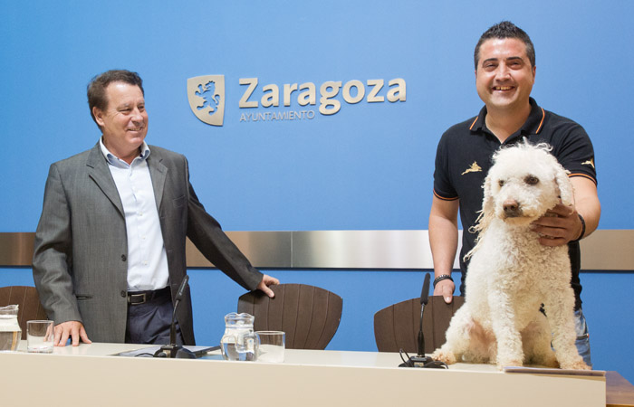 El consejero de Medio Ambiente del Ayuntamiento de Zaragoza y vicepresidente de la Sociedad Municipal Zaragoza@Desarrollo Expo, Jerónimo Blasco, y el gerente de la nueva instalación, David Molina, han anunciado esta mañana que comienza la instalación del centro profesional para entrenamiento de perros ('Agility' y obediencias urbanas, dog frisbee y canicross -correr a pie con el perro-) del Parque del Agua.