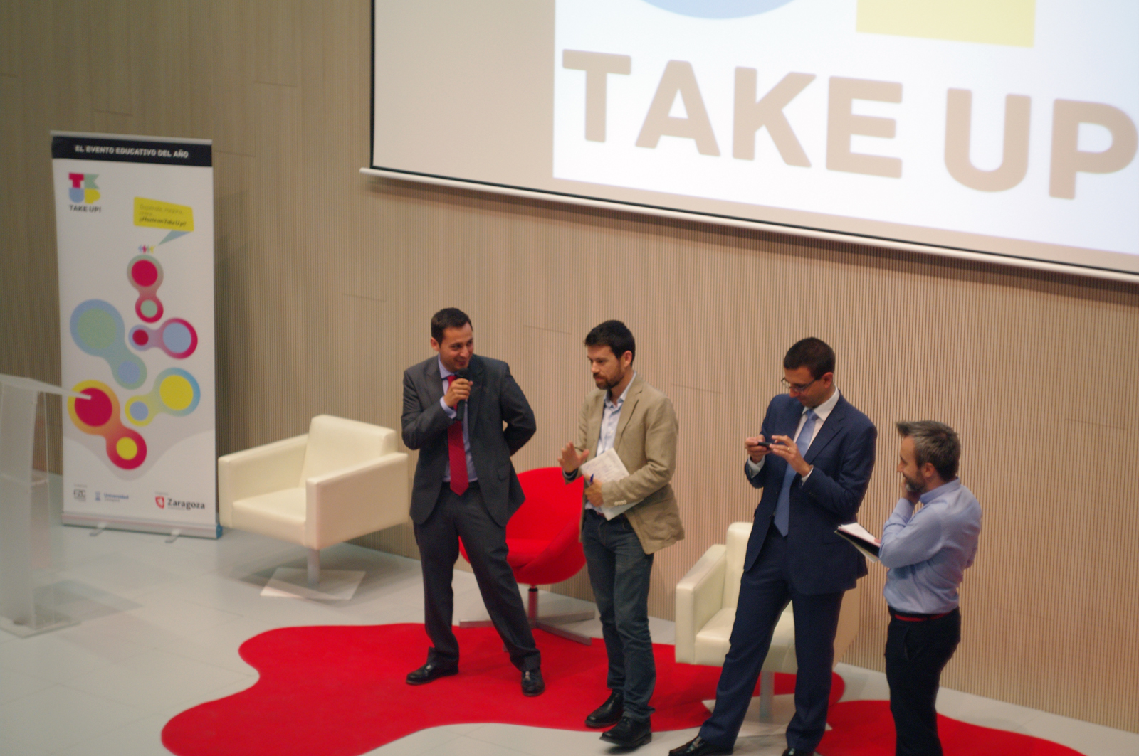 Take Up arranca a las 9.00 horas con la inauguración. A continuación se llevará a cabo una entrevista y una charla con los jóvenes estudiantes que en la primera edición se alzaron con el premio al mejor proyecto. A las 11:00 será el inicio de la jornada de trabajo Take Up con cinco retos -movilidad, medio ambiente, salud, cultura digital y educación- que los jóvenes, divididos en cinco grupos, iresolverán repartidos en tres espacios: los centros de emprendimiento e innovación de Initland en Aragón -Ciem Torre Delicias y Ciem Zaragoza- y La Terminal en el Centro de Arte y Tecnología Etopia.