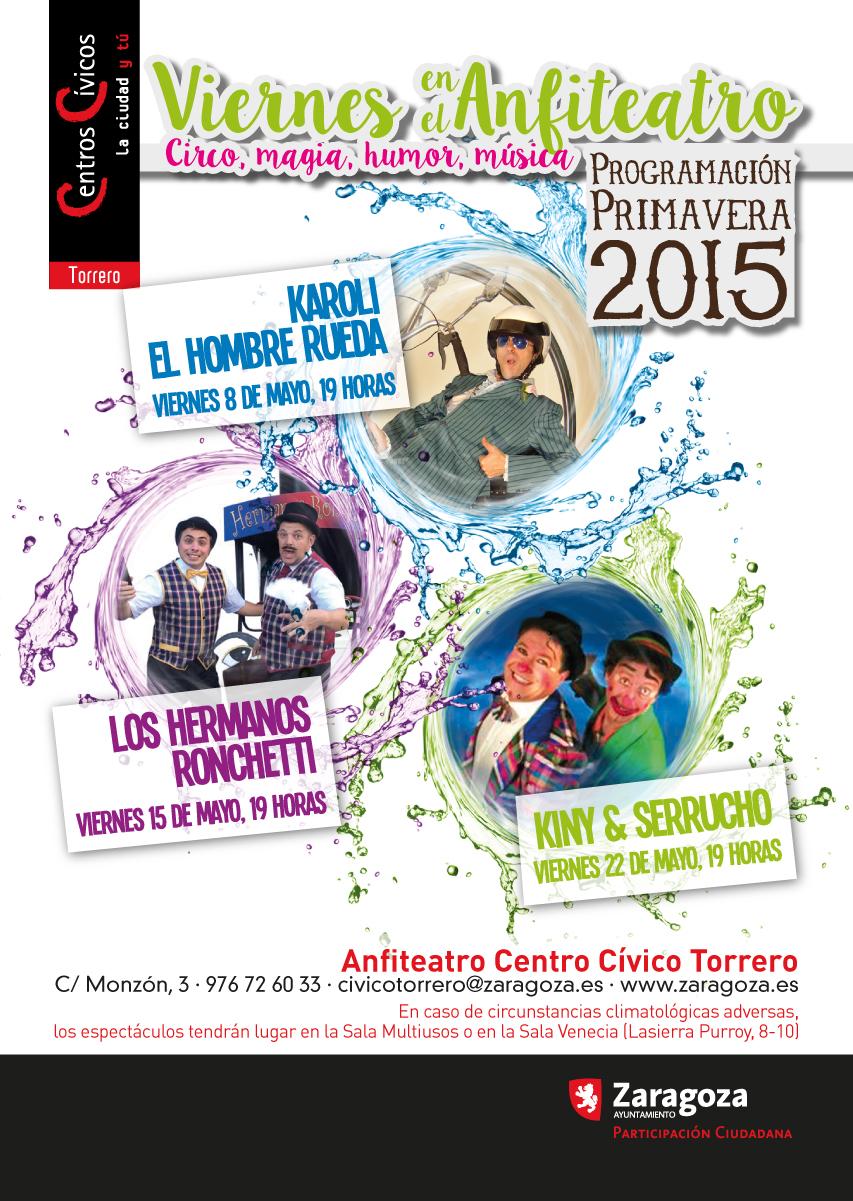 Un año más el distrito de Torrero celebra la primavera con distintas actividades culturales que se llevarán a cabo durante este mes de mayo, y con el fin de que todos los asistentes lo pasen lo mejor posible y se distraigan al aire libre, en el Anfiteatro del Centro Cívico de Torrero (C/Monzón, 3). Sólo en caso de circunstancias climatológicas adversas, los espectáculos tendrán lugar en la Sala Multiusos o en la Sala Venecia del distrito de Torrero.