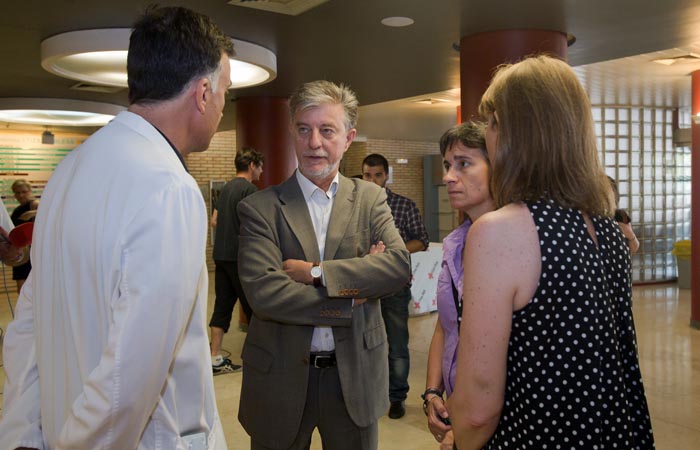 El alcalde de Zaragoza, Pedro Santisteve junto a de la vicealcaldesa, Luisa Broto han visitado esta mañana los tres hospitales, el Hospital Royo Villanova, el Hospital Miguel Servet y el Hospital Clínico, para interesarse por el estado de las 12 personas que resultaron heridas en el incendio sucedido anoche en la residencia privada Santa Fe, junto a Cuarte de Huerva (en el kilómetro 9,300 de la N-330), término municipal de Zaragoza.