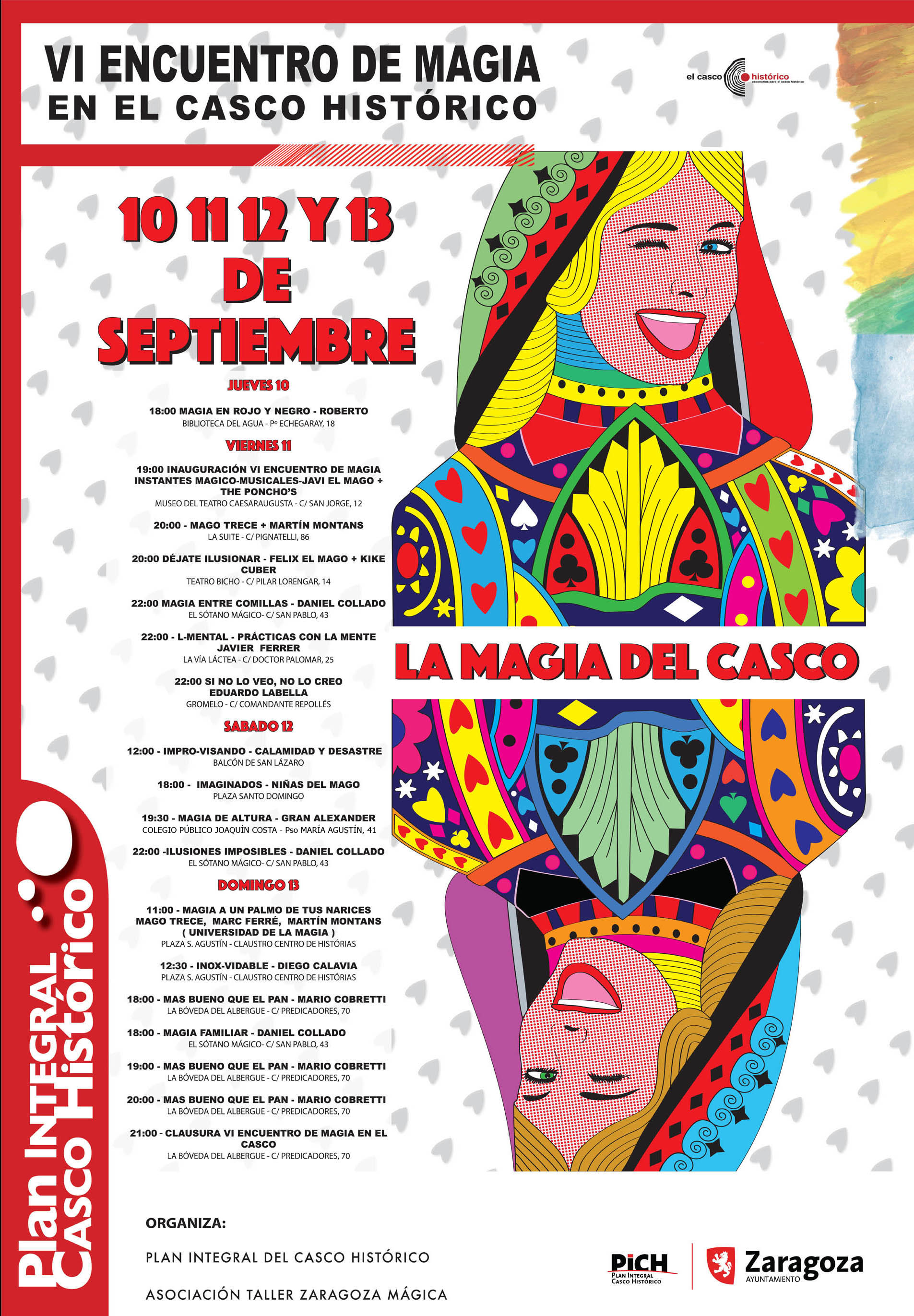 Mañana jueves arranca en Zaragoza el VI Encuentro de Magia en el Casco Histórico, un intenso programa que, hasta el domingo, día 13, llevará espectáculos de magia, ilusionismo y humor una docena de escenarios repartidos por todo el distrito. La muestra ha sido organizada por el Plan Integral del Casco Histórico (PICH) y la Asociación Taller Zaragoza Mágica, y cuenta también con el apoyo de las diferentes salas que lo acogen.