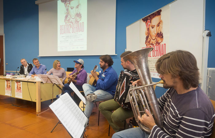 El consejero de Economía y Cultura, Fernando Rivarés, ha asistido esta mañana a la presentación del último trabajo de la cantadora Beatriz Bernad, que dedica a "Las Pilares", y cuya grabación se ha llevado a cabo en el Laboratorio Audiovisual del Centro de Historias de Zaragoza. Al acto también han asistido la propia cantadora, el productor ejecutivo del disco, José Luis cortés, y el arreglista y director musical del mismo, Alberto V. Gambino, así como varios de los músicos que han participado en la grabación, y de los poetas que han contribuido con sus letras a las coplas y que en él se interpretan.