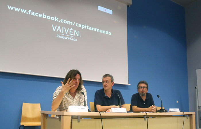 El consejero de Economía y Cultura, Fernando Rivarés, ha acompañado esta mañana al Músico Luis Miguel Bajén quien, bajo el seudónimo de Capitán Mundo, ha presentado en el Centro de Historias el Proyecto Vaivén, una experiencia musical que va a estrechar los vínculos culturales y creativos entre Zaragoza yCuba.