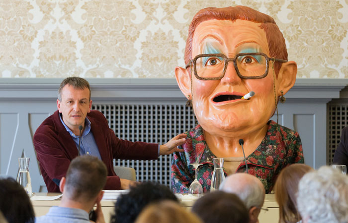 Rivarés ha estado acompañado de un nuevo cabezudo que este Pilar se incorpora a la Comparsa de Gigantes y Cabezudos: La Cigarrera, Herminia Martínez Linés, conocida popularmente como Serafina, la última cigarrera del Tubo. "Por fin la señora Serafina ha logrado uno de sus deseos -ha dicho Rivarés- que no pudo ver cumplido en vida: que el Ayuntamiento de Zaragoza le hiciera un cabezudo en reconocimiento a su figura. Sus rasgos quedarán inmortalizados y servirán para que los más pequeños disfruten con su cabezudo, ella que tanto quería a los chiquillos".