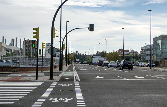 Asimismo, se incorporan dos carriles bici unidireccionales en ambos lados de la calzada y con una anchura de 1,20 metros. Esta plataforma específica se protege de la calzada mediante separadores de caucho. La calzada del vial dispone de 13,30 metros de ancho, distribuidos en dos carriles por sentido de 3,00 y 3,50 metros, según sea el más próximo o el más alejado del carril bici, además de una banda central de 0,30 metros de separación del tráfico. Los trabajos en la Alcalde Caballero han supuesto también la sustitución de la tubería de abastecimiento de agua que discurre bajo la acera del camino de Cogullada por una conducción de fundición dúctil de 150 mm de diámetro.