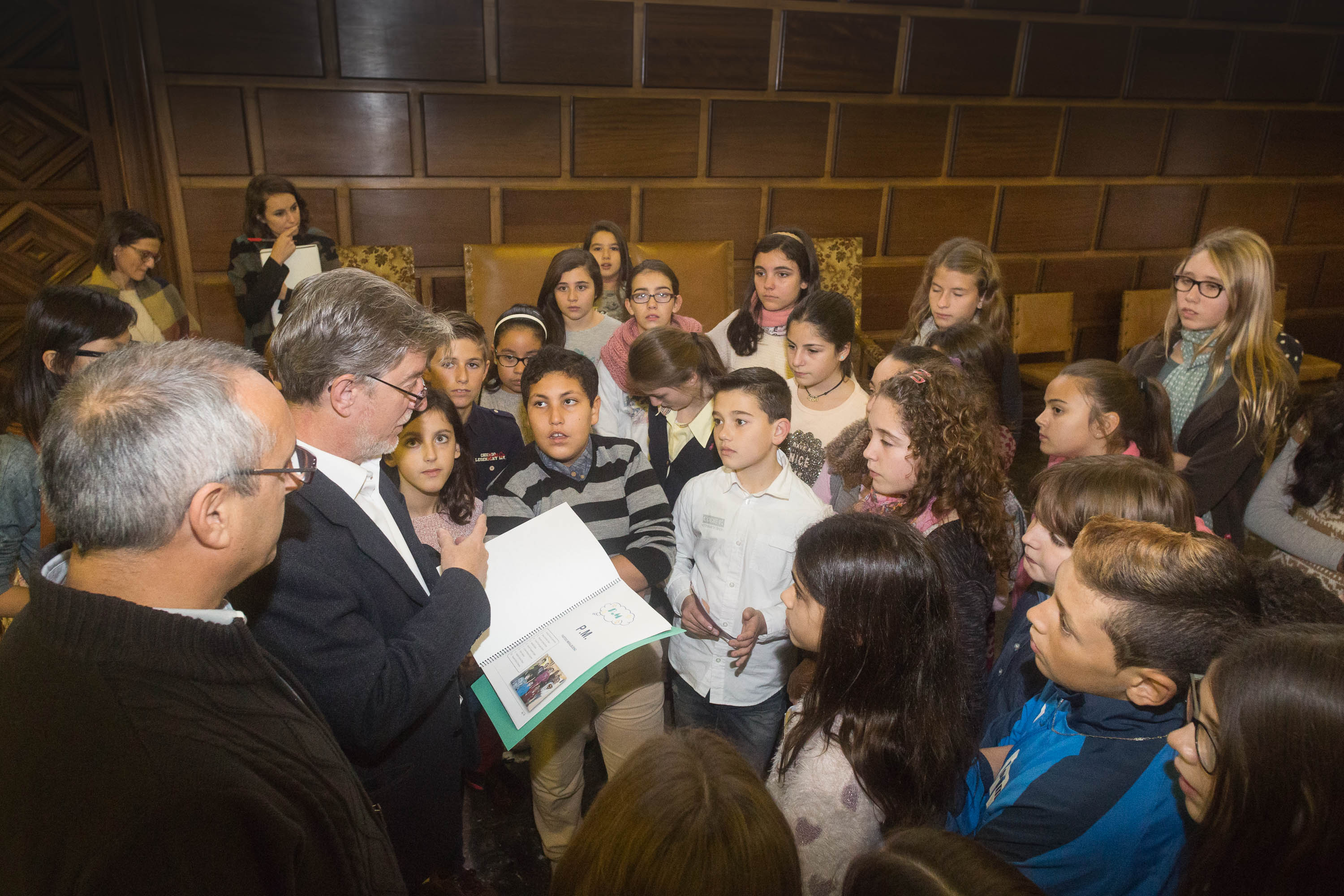 Los 40 niños y niñas que han visitado hoy el Ayuntamiento han conocido las instalaciones de la Casa Consistorial y charlado con Santisteve durante casi una hora. En primer lugar, le han explicado el programa educativo que están desarrollando actualmente, 'Elecciones en el cole', mediante el cual cuatro partidos nacidos de sexto curso concurrirán a sus propias elecciones el día 18 de diciembre.