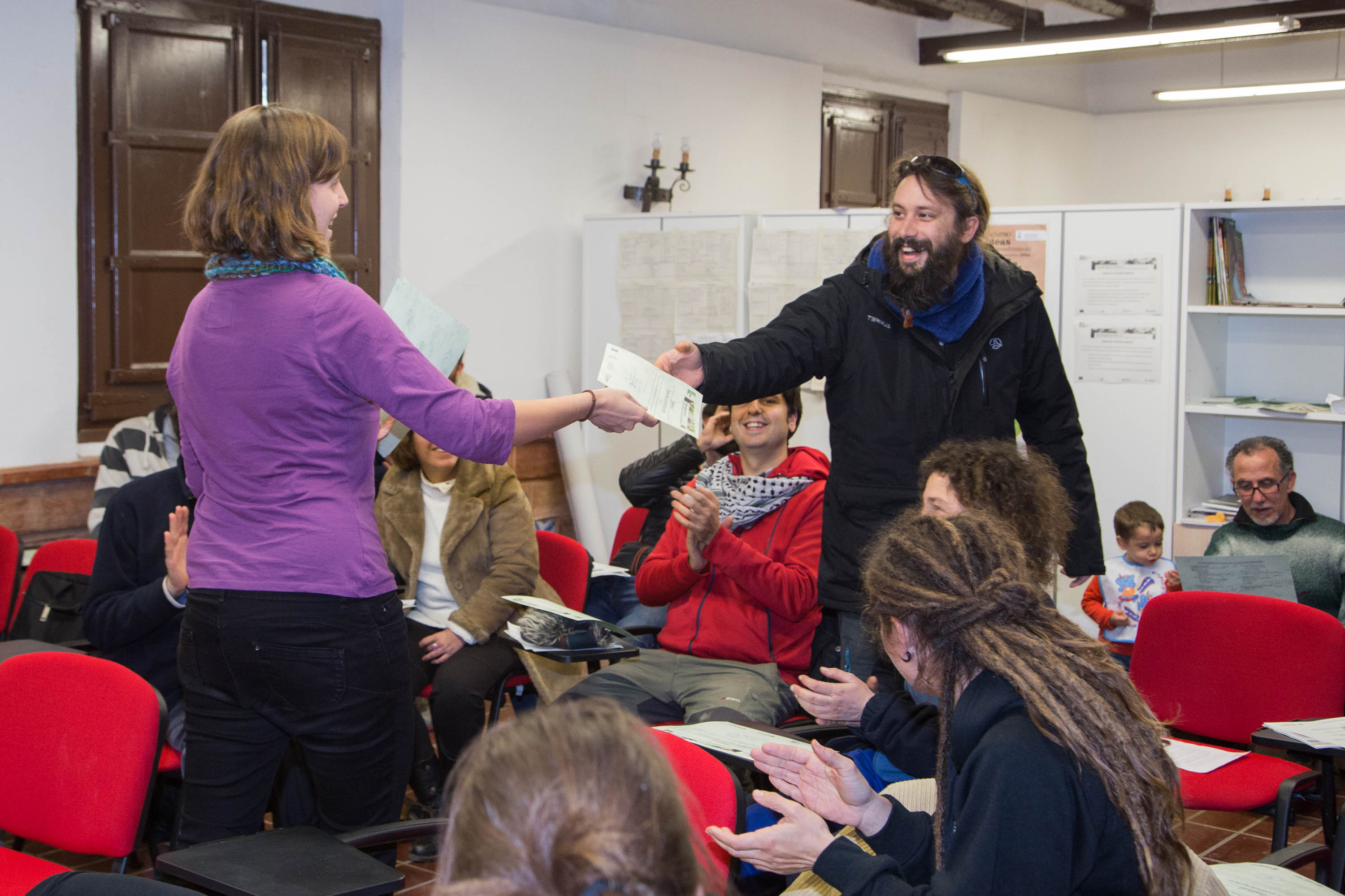 Para finalizar, Teresa Artigas, concejala de Medio Ambiente, junto con Olga Conde, coordinadora del proyecto Huertas LIFE Km0, han recogido los comentarios de evaluación de las personas participantes sobre el programa formativo, antes de dar paso a la entrega de diplomas que avalan la participación en esta formación.