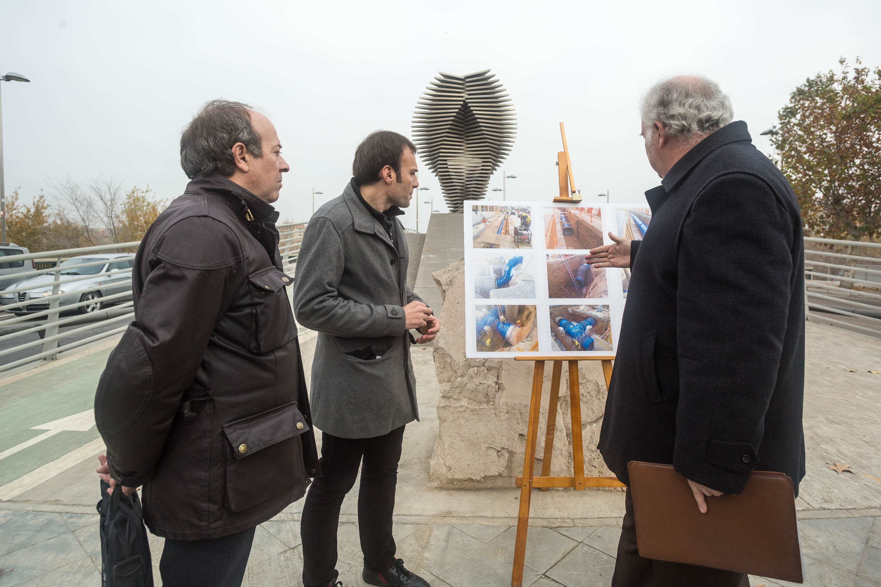 Desde el pasado verano, en esta zona han coincidido dos obras, de gran importancia para garantizar el suministro de agua a los barrios de la Margen Izquierda. Por un lado, en la zona del estribo izquierdo del Puente de la Almozara, se ha llevado a cabo la renovación de las tuberías arteriales del cruce de las avenidas José Atarés y Valle de Broto, que ha sustituido varios tramos de tuberías de hormigón armado que presentaban importantes roturas, sustituyéndolas por otras nuevas de fundición dúctil. Por otro lado, en la Plaza de Europa y el Paseo María Agustín, incluido el cruce con la avenida de Madrid, se ha llevado a cabo la renovación de las tuberías arteriales que discurren por toda esa zona y entroncan con el Puente de la Almozara. Estas dos obras han sido financiadas al 80% por el Programa Operativo Fondos de Cohesión-Feder 2007-2013 de la Unión Europea.