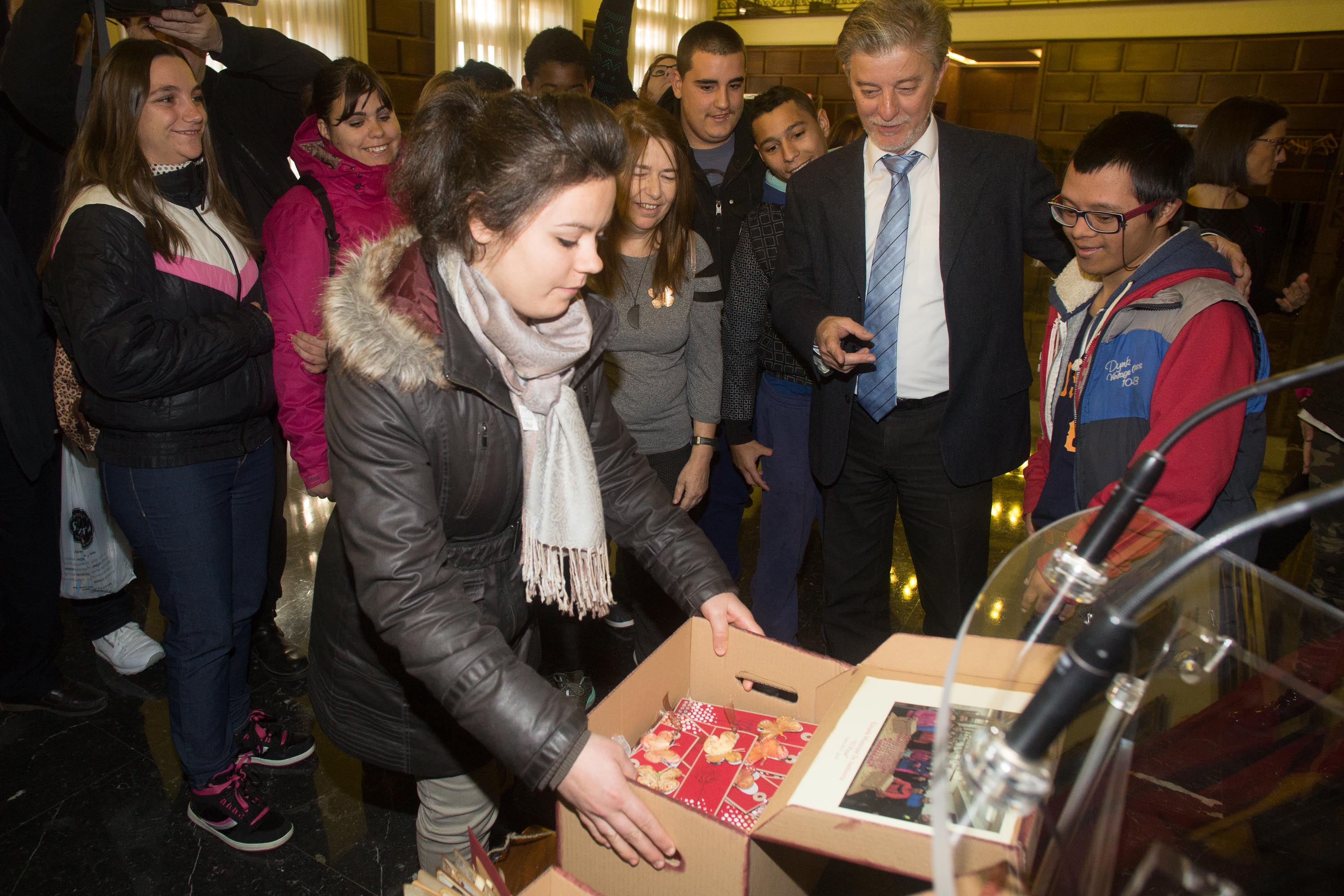 Una de las tareas para fomentar la participación es la elaboración de estas felicitaciones, que este año fueron entregadas por sus autores en mano al alcalde de Zaragoza, Pedro Santisteve, el día 2 de diciembre durante una visita a la Casa Consistorial. El alcalde también recibió un libro de fotos y trabajos elaborados por los jóvenes que ha sido colocado en una vitrina junto a los presentes que el Ayuntamiento ha recibido de diplomáticos y embajadores.