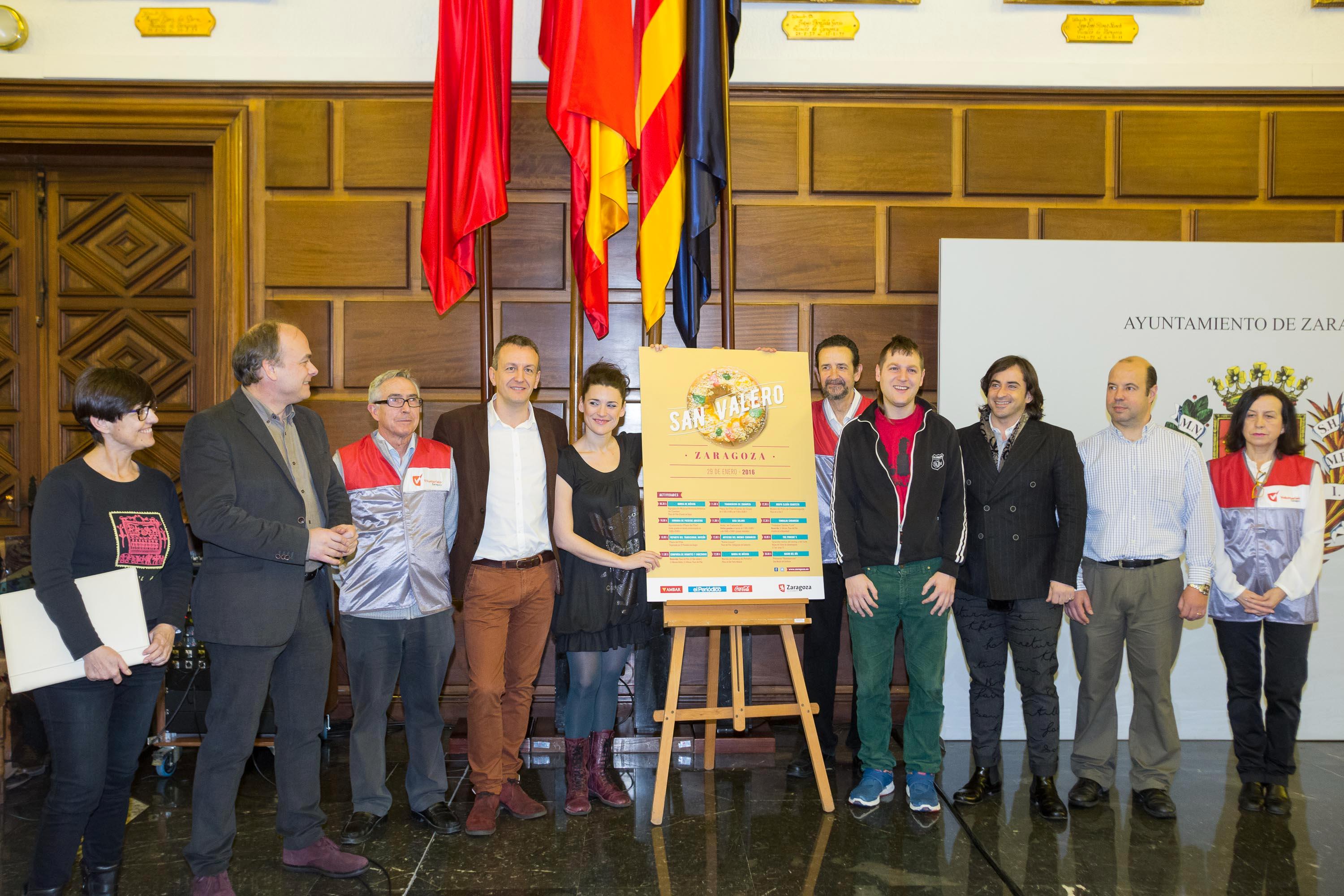 El Concejal de Economía y Cultura del Ayuntamiento de Zaragoza, Fernando Rivarés, ha presentado hoy el programa de actos de San Valero 2016, que arrancarán a las 10.00 horas con el reparto del tradicional roscón en la Plaza del Pilar, organizado por el Periódico de Aragón. Además, este año habrá roscón para celiacos, en la misma Plaza, que aporta el Ayuntamiento a petición de la Asociación Celíaca Aragonesa. Voluntarios de esta misma asociación efectuarán el reparto.