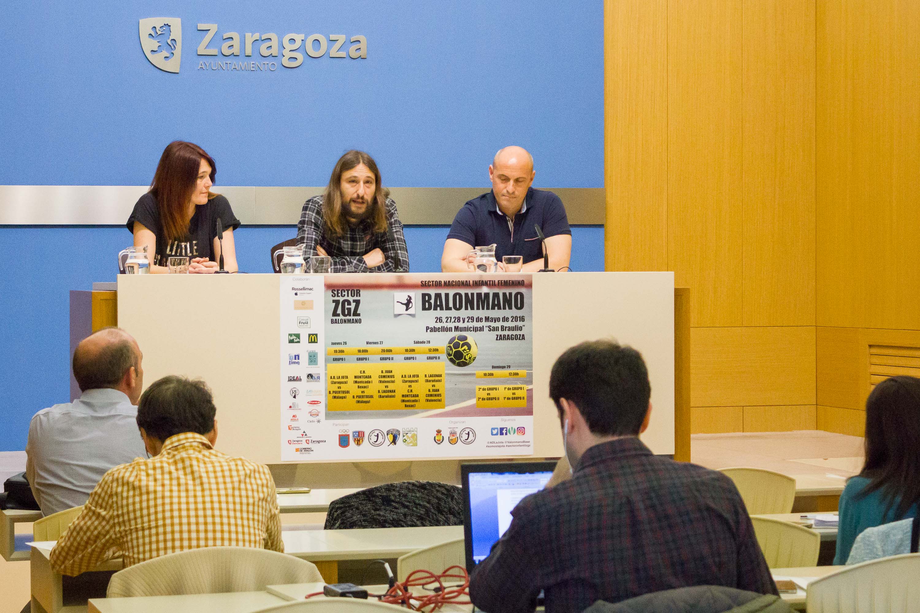 El concejal de Deporte, Pablo Híjar, ha presentado hoy la segunda fase del Campeonato de España de Clubs de Balonmano en la categoría Infantil Femenino, que se disputará en la capital aragonesa entre el 26 y el 29 de mayo. En la presentación del evento, organizado por la Agrupación Deportiva Balonmano la Jota en colaboración con la Federación Aragonesa y Española de Balonmano, han participado Juan Carlos Gordo, director deportivo del citado club zaragozano y Mari Carmen Callen, secretaria del mismo.