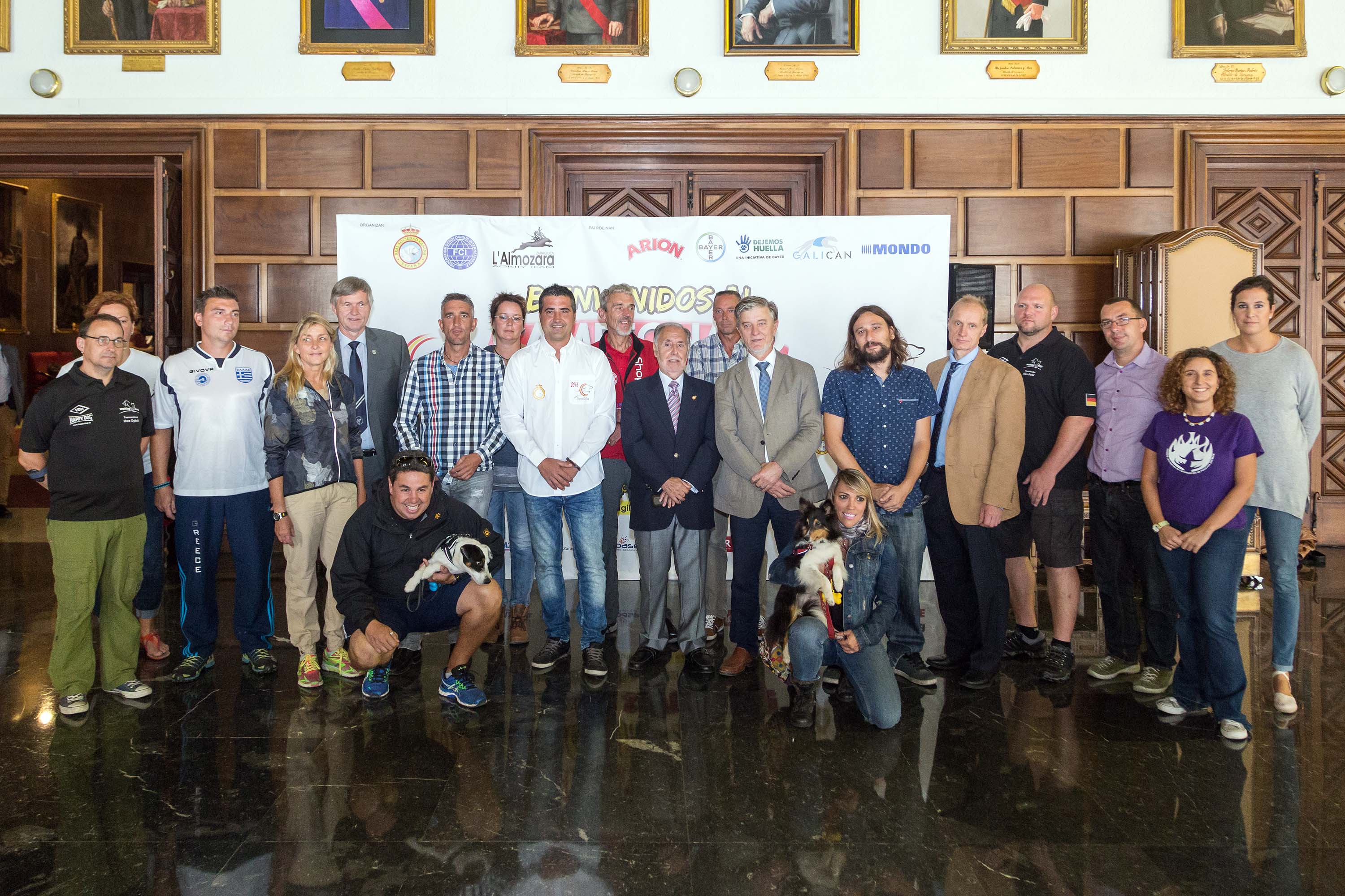 El alcalde de Zaragoza, Pedro Santisteve, y el concejal de Deporte, Pablo Híjar, han recibido hoy en la Casa Consistorial a representantes del Campeonato del Mundo de Agility, cita internacional que se celebrará en la capital aragonesa del 22 al 25 de septiembre. Un total de 492 perros provenientes de 42 países participarán en el evento más prestigioso de una de las modalidades caninas más visuales y llamativas, la de Agility.