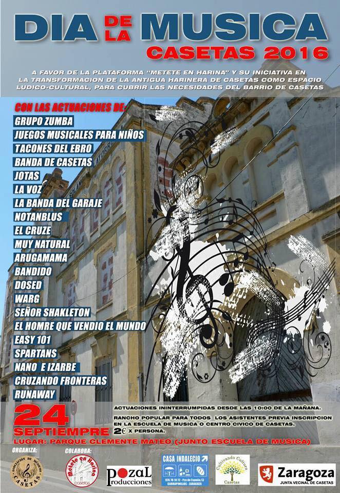 El barrio de Casetas celebrará este sábado el Día de la Música en Casetas 2016 en el Parque Clemente Mateo de este barrio de Zaragoza.