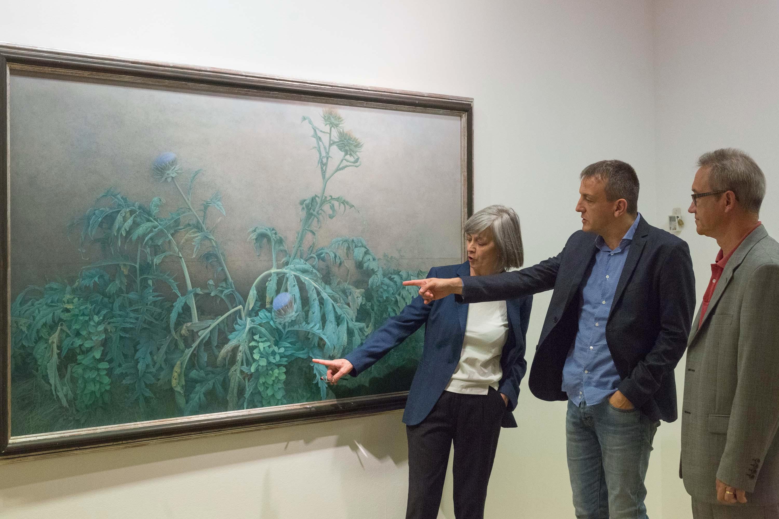 La muestra, 'Retrospectiva 1977-2016', recoge las etapas fundamentales de la trayectoria profesional de la artista a lo largo de los últimos cuarenta años. Está integrada por cincuenta y siete pinturas al óleo sobre lienzo (salvo una realizada sobre panel) y cinco dibujos a lápiz sobre papel. Todas ellas están fechadas entre 1977, cuando sólo llevaba tres años practicando con el pincel, y este mismo año 2016, al que pertenecen dos de las obras expuestas.