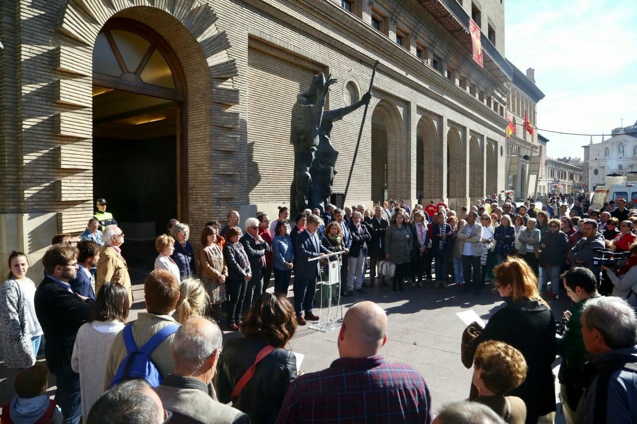 El Alcalde de Zaragoza, Pedro Santisteve, ha leído un manifiesto en la concentración contra las agresiones sexistas que se ha convocado esta mañana en la puerta del Ayuntamiento, a la que han asistido miembros de la Corporación y multitud de personas. Este es el texto de la declaración institucional: