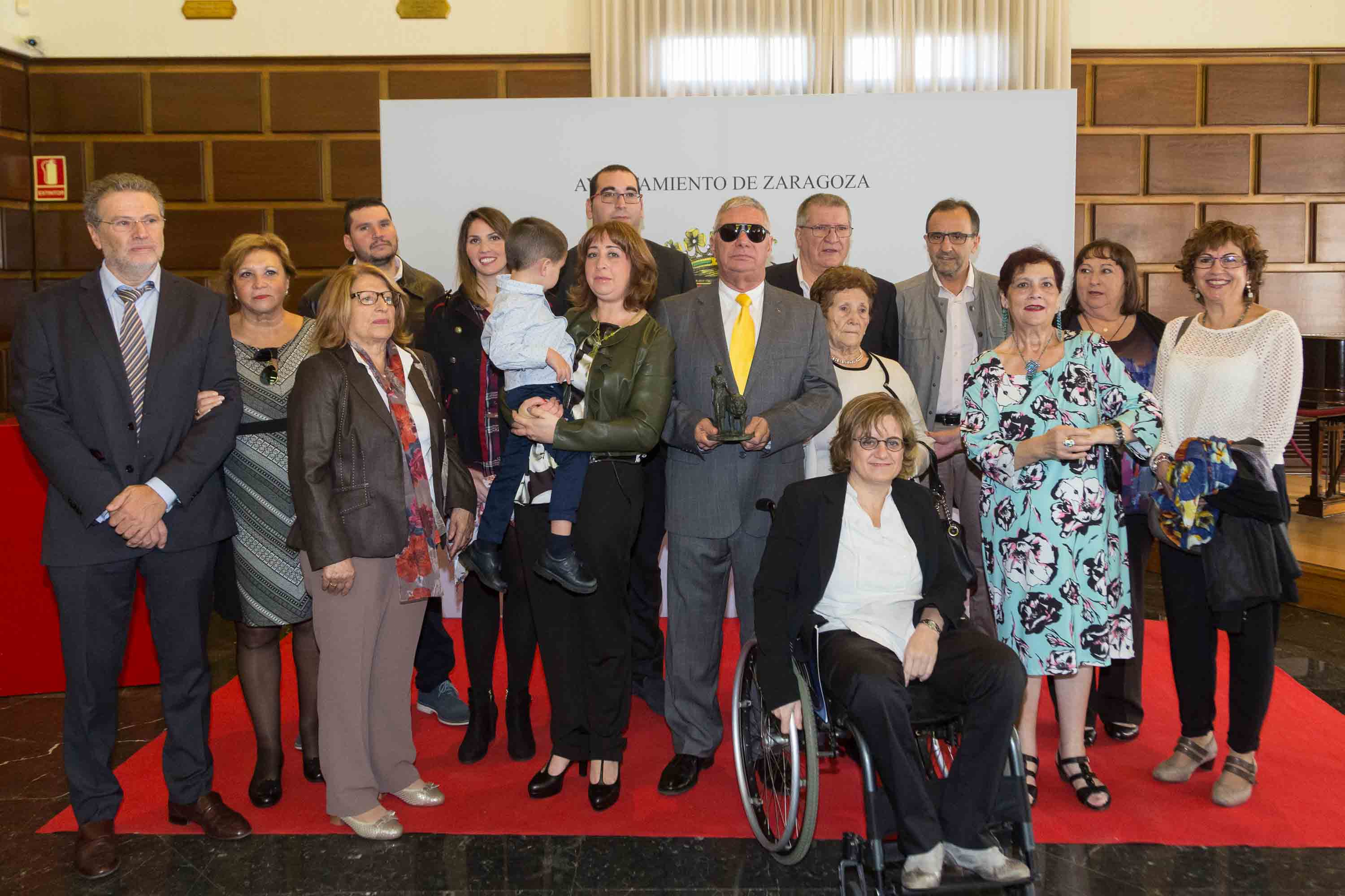 La intervención del Zaragozano Ejemplar 2016 ha concluido con unas palabras para su familia, comenzando por su madre, presente también en el homenaje, y continuando por su mujer, sus hijos -también comprometidos en el ámbito de la discapacidad- y su nieto, Marcos, "que es un pedazo de cielo".